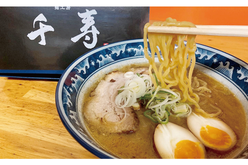 行列のできる人気店「千寿」の味を再現。道産小麦ならではのコシのある麺と、濃厚でスパイシーな味噌スープが絶品。