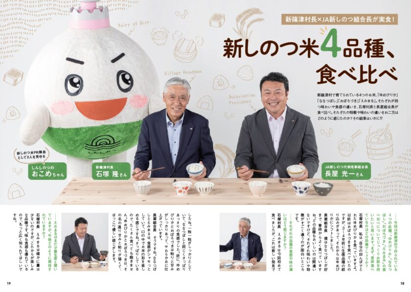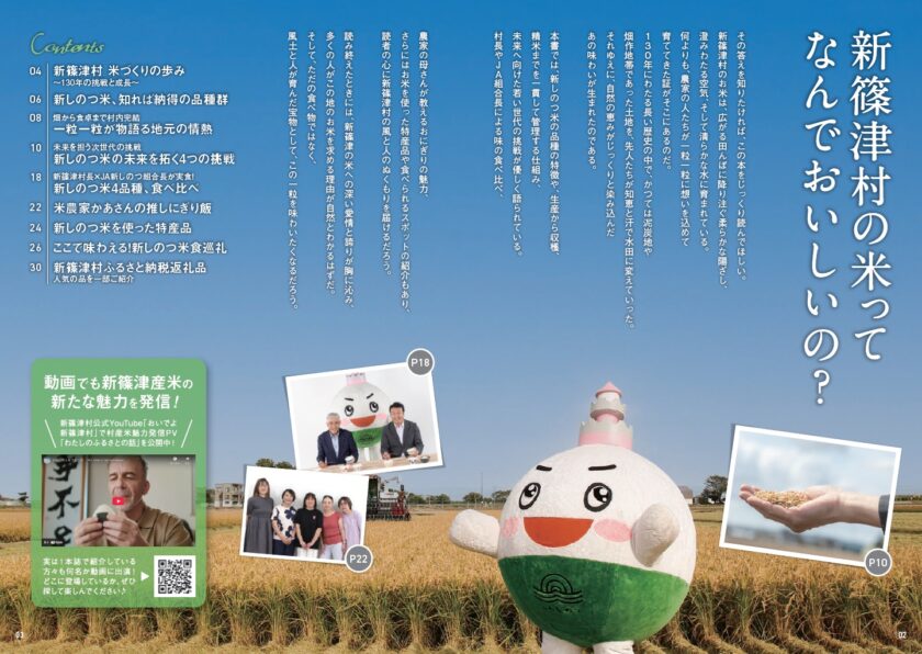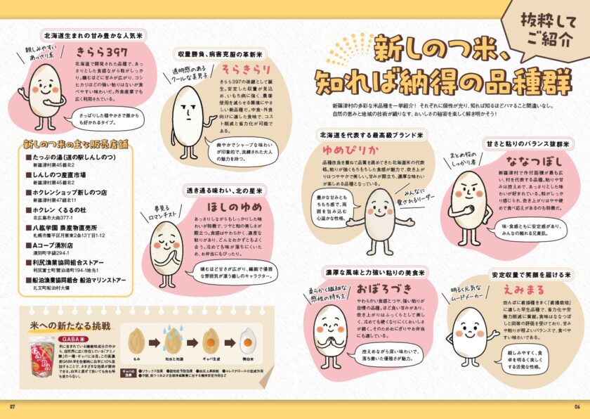 誌面には、新篠津村ならではの個性豊かな多彩な米品種の紹介に加え、生産から収穫、精米まで一貫して行う管理体制や、未来を担う次世代による革新的な挑戦など、「そうだったんだ!」「知らなかった!」と感じる情報が満載です。