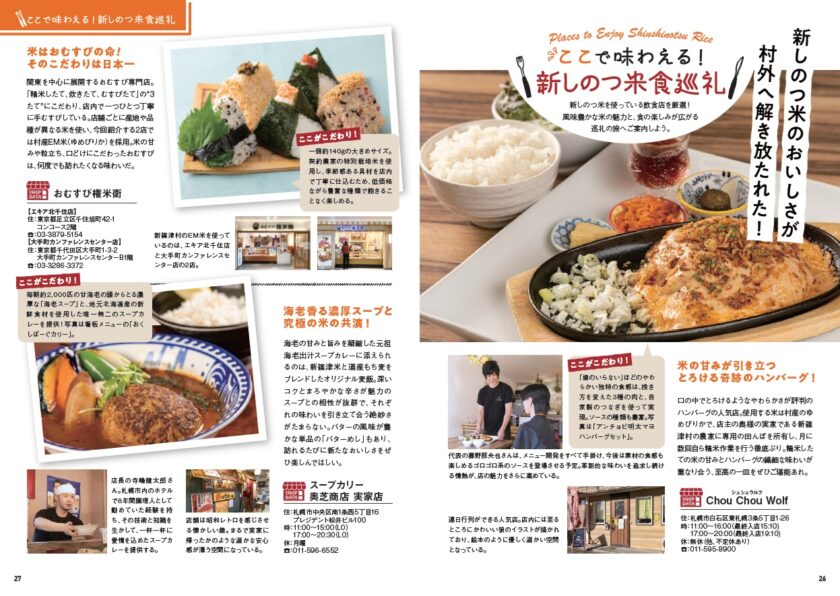 さらには、米農家のおかあさんたちの推しにぎり飯や伝統レシピ、新しのつ米を使った加工品、新しのつ米が味わえる村内外の飲食店も厳選してご紹介!