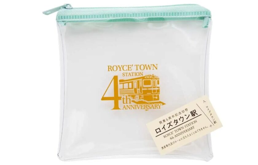 ●グッズ②オリジナルポーチ: ロイズタウン駅4周年記念ロゴがデザインされたクリアポーチもセットでプレゼントいたします。